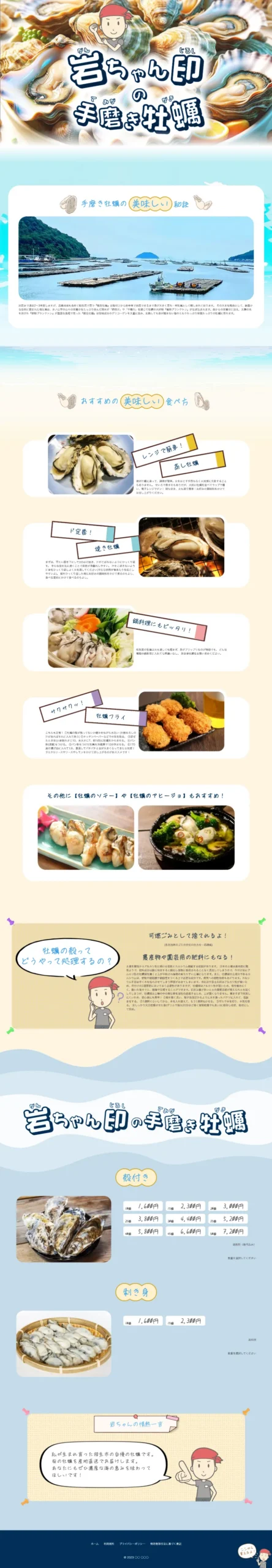 牡蠣販売店LP制作の実案件に用いられたワイヤーフレームを元に、デザインカンプの作成からコーディングまでを行いました。