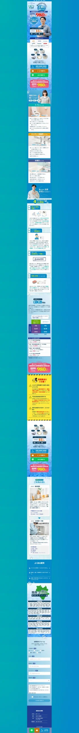 関西エリアにて水回りのトラブル対応に取り組んでいる会社水道お直し隊さまのLPを制作させていただきました。