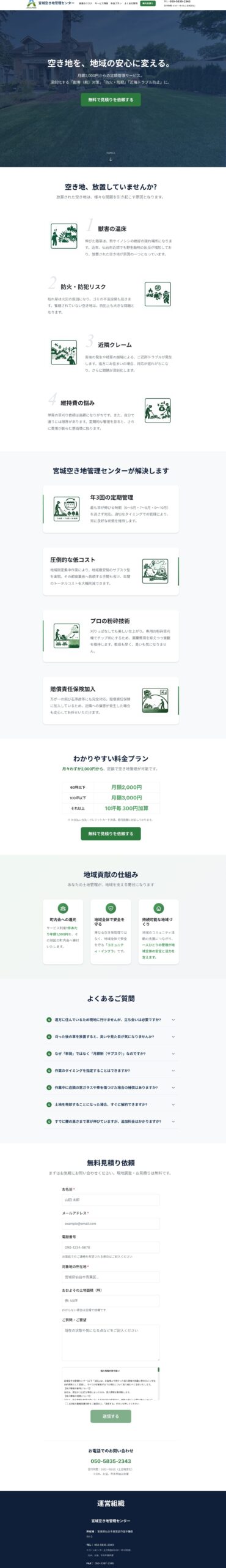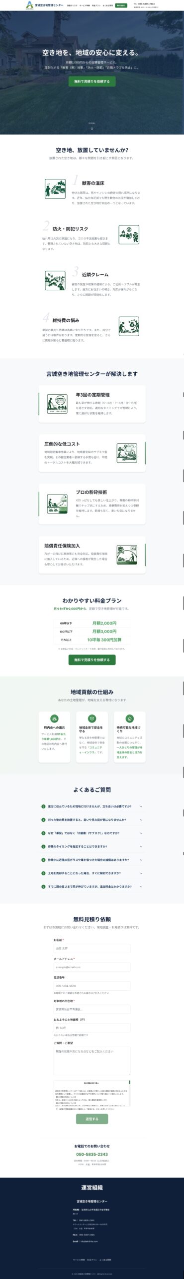 宮城県にて不用品回収を行っている宮城空き地管理センターさまのLPを制作させていただきました。